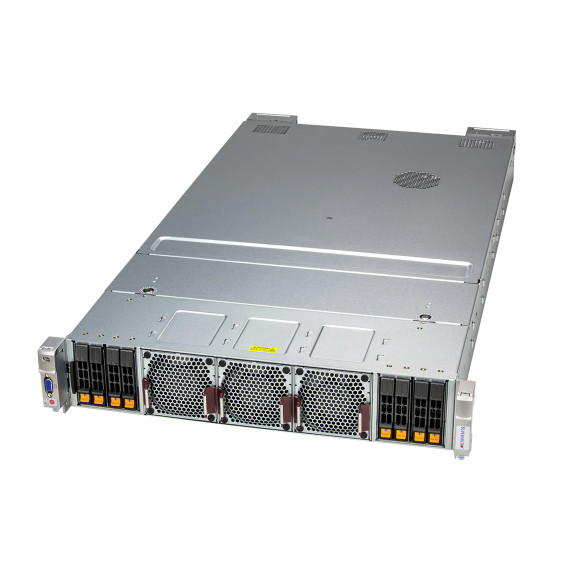 Quad AMD Instinct™ MI300A processors; Onboard 512GB HBM3 unified memory; Optional PCIe configurations up to 6 PCIe x16 FHHL slots; Flexible networking options with 1 AIOM networking slots (OCP NIC 3.0 compatible); Default 8 2.5" NVMe drive bays or Optional 8 2.5" SAS3/SATA3 drive bays via storage add-on card 2 Internal NVMe/SATA M.2 slots; 3 heavy duty fans w/ Liquid Cooled; 4x 2700W redundant Titanium level power supplies;